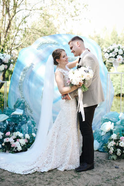 Готовиться мы начали сильно заранее. Встретились с парой первый раз перед новогодними праздниками. И они сразу доверились нам, безоговорочно. Тема родилась в процессе, смелая, яркая, подходящая ребятам: Катя, как выяснилось, всегда мечтала о световом мече, а ещё рядом вдвоём с Лешей они чувствовали, что вдвоем могут горы свернуть. Тогда нам и попалась на глаза известная фраза Дарта Вейдера, вынесенная в эпиграф: "Вместе мы можем править вселенной!" Да-да, вы все правильно поняли, мы выбрали звёздные войны для реализации в торжестве!